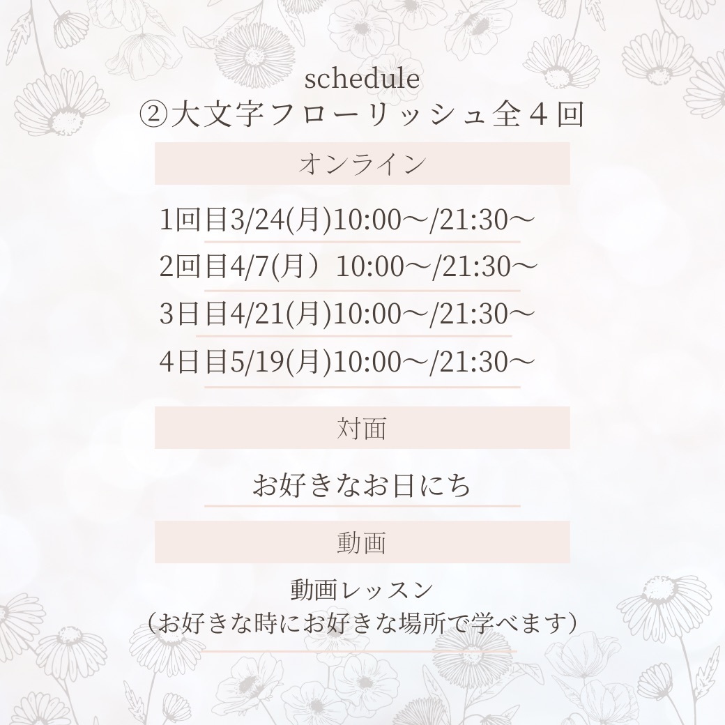 | 日程 | 【オンライン】レッスン、【対面】レッスン、動画レッスン 上記をご覧ください。 |